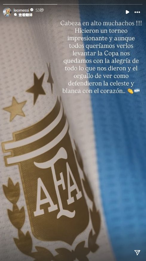 阿根廷U20国家队失去夺冠机会!梅西鼓励同胞:你们很棒!